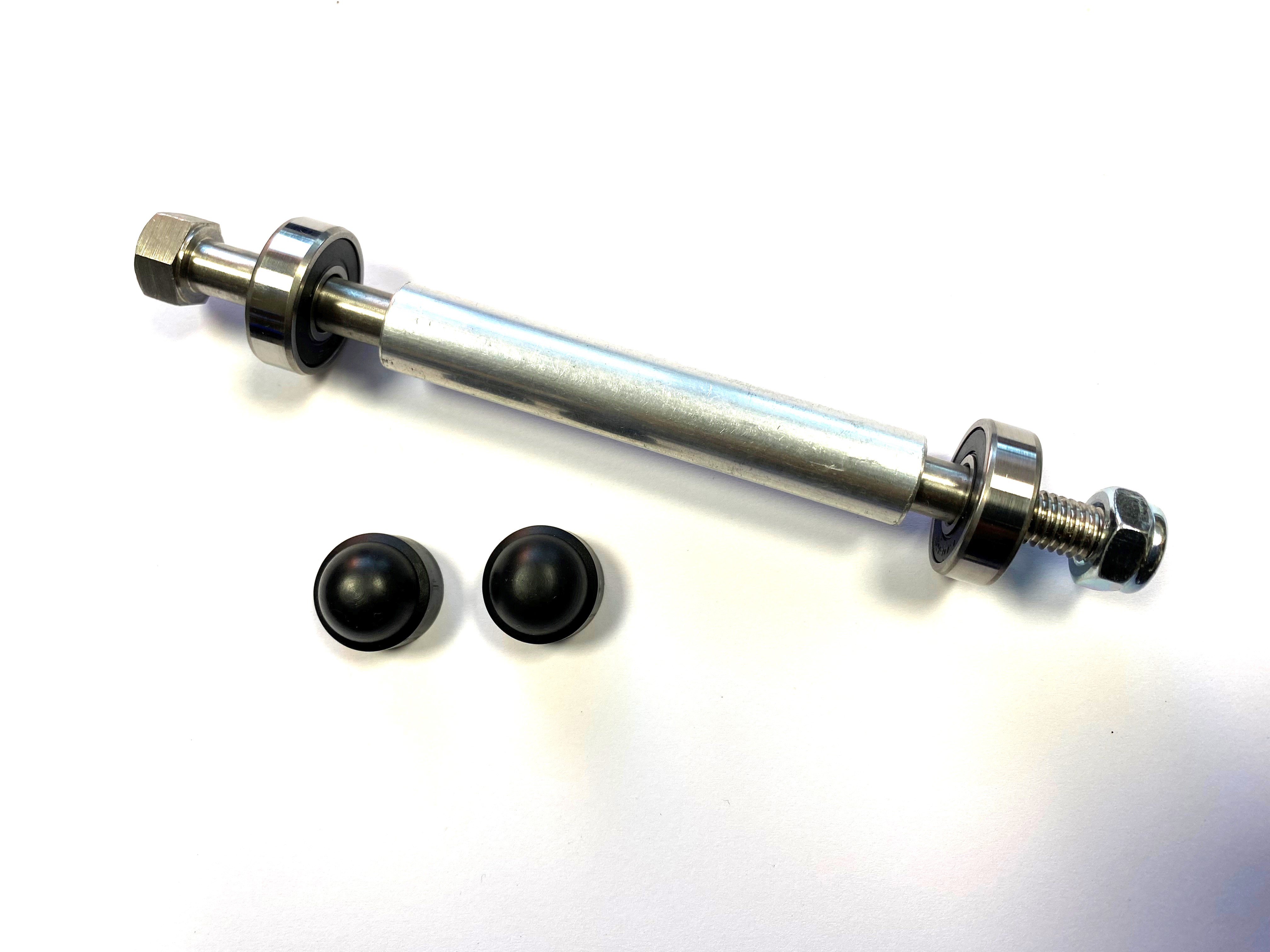 Bestehend aus Vorderradachse mit Lagern, Rohr und Mutter mit 2 Kunststoff-Schutzkappen